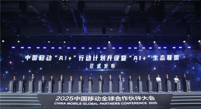 10月11日,在2025中国移动全球合作伙伴大会主论坛上,中国移动正式发布“AI+”行动计划升级暨“AI+”生态联盟。作为央企AI“国家队”,该计划的发布标志着中国移动将全面促进经济社会智能化水平提升,带动形成千亿级市场规模的产业新生态。